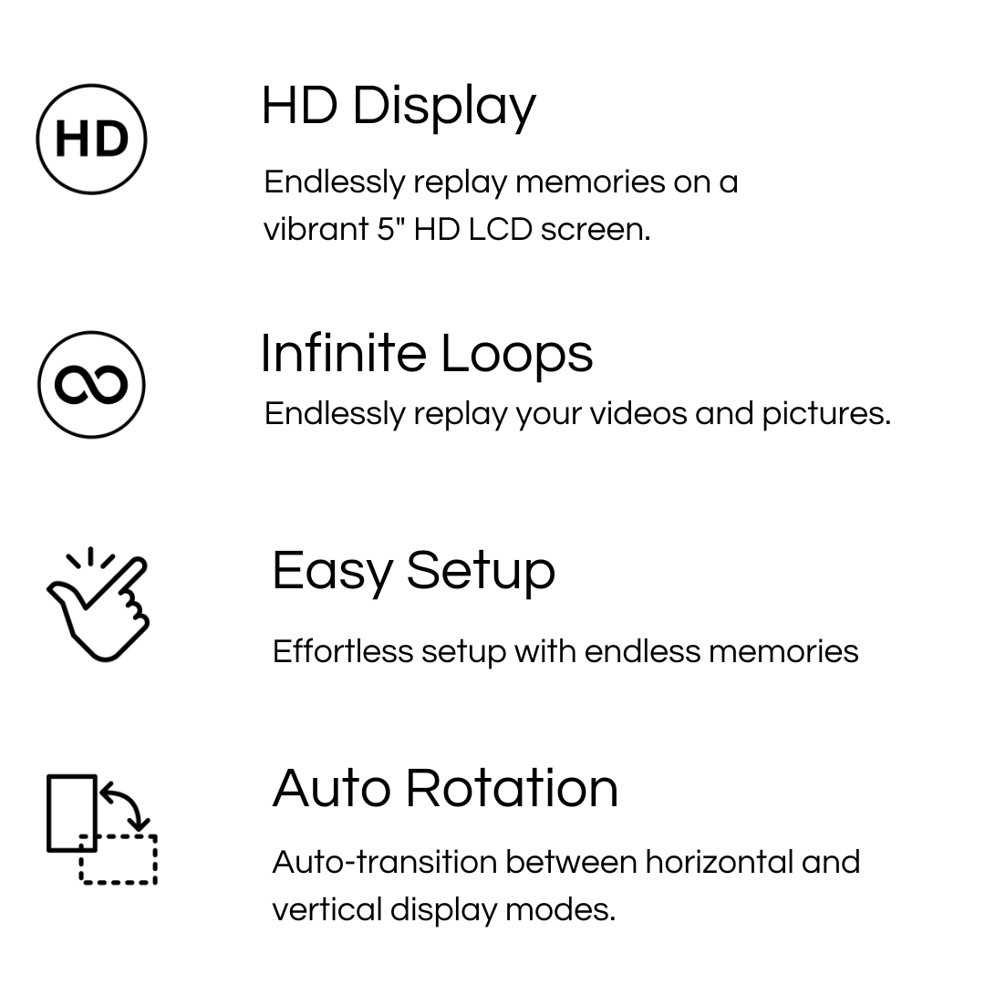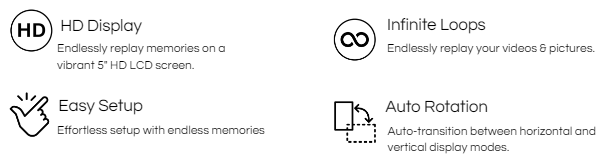 Surround yourself and your loved ones with memories, each hug, each laugh, each shared adventure captured in stunning detail. Our 6.5" acrylic frame and 5" HD LCD screen turn ordinary moments into cherished treasures, inviting you to relive them endlessly. Easily connect, upload, and embark on a timeless journey through the heartwarming tapestry of your lives together.