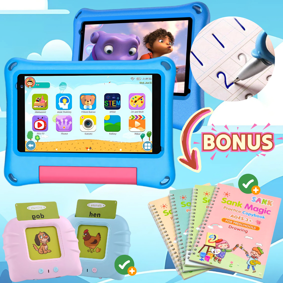When it's time for a screentime break, kids can enjoy the audible flashcards or writing books